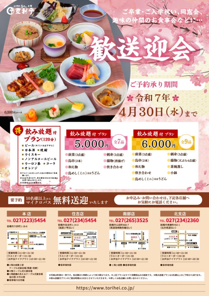 登利平歓送迎会チラシ2025・SNS HP