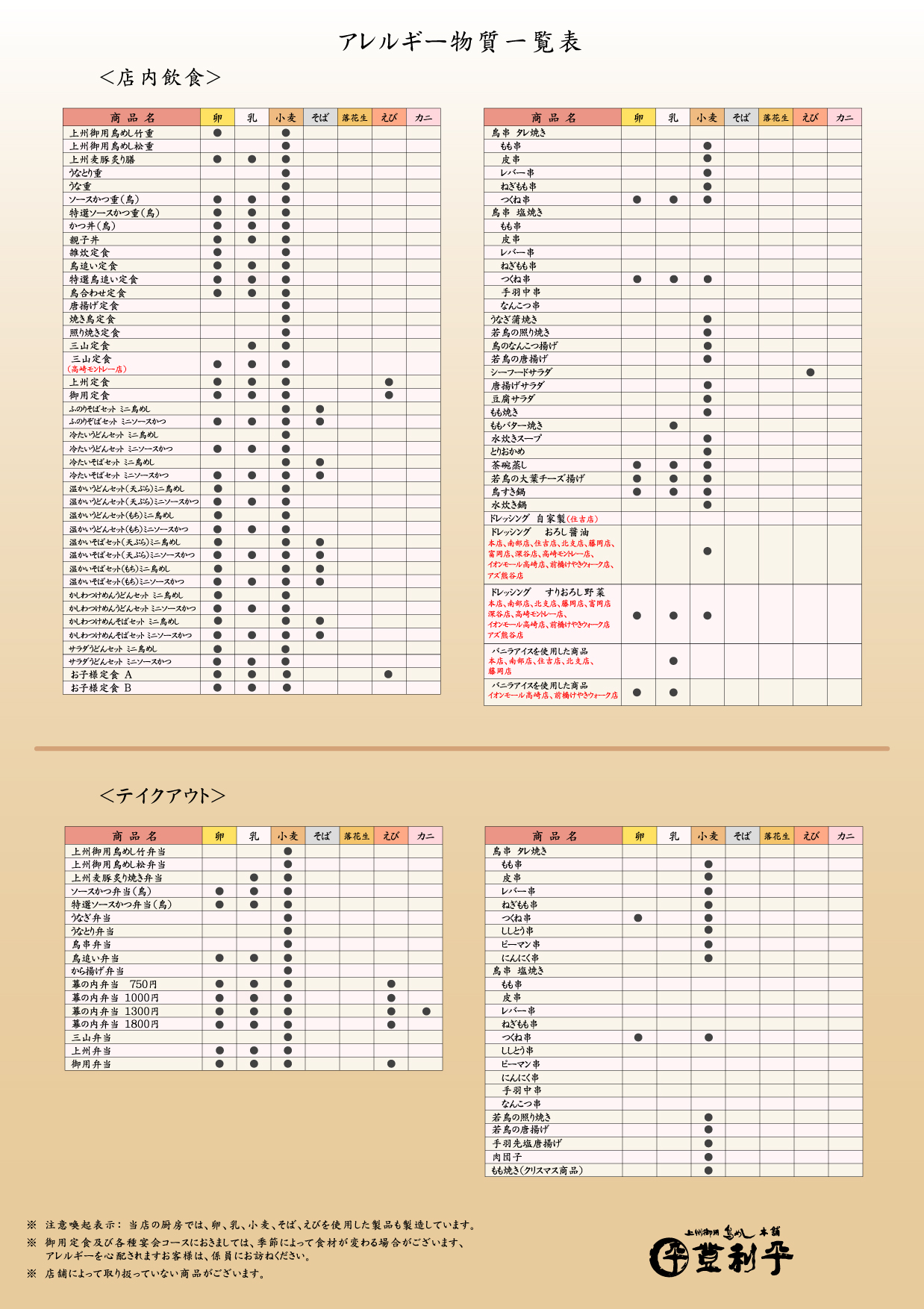 アレルギー物質一覧について