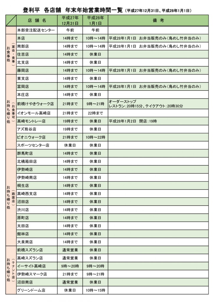 2016年末年始営業