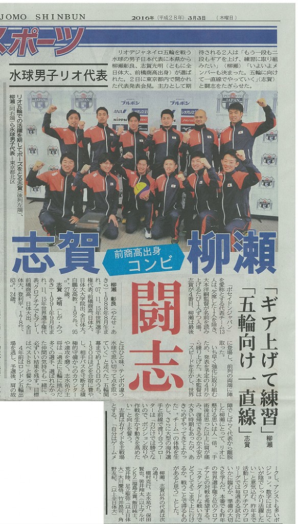 リオ五輪水球男子日本代表の志賀光明選手(前橋商高出身)が入社いたしました