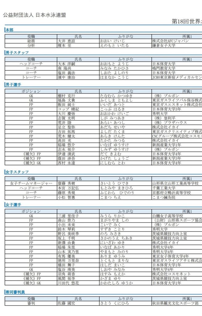 世界水泳代表選出